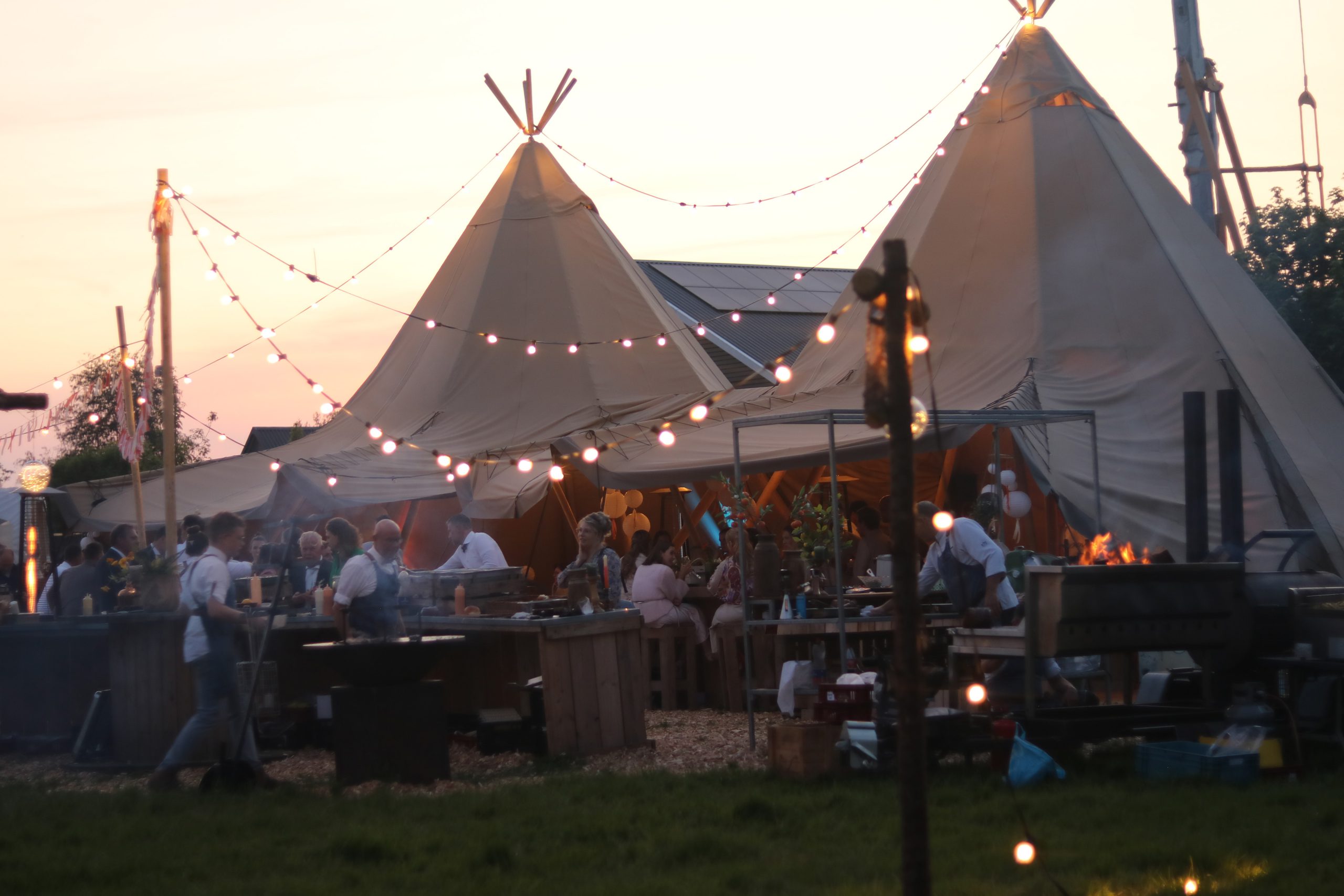 Of het nu gaat om een bruiloft, een festival, een zakelijk event of een ander feest, de tipitenten van Festorya brengen een unieke en warme ambiance. Kasteelallure in een buitenbeleving. Binnen geven de hoogtes van de tipitoppen en de bijbehorende laagtes daartussen een subtiele sfeer. Ook geeft de opstelling van Festorya’s tipitent bijzondere effecten aan je verlichting en werkt het prettig mee aan behoud van warmte tijdens koudere dagen. Wij bieden ook diverse extra’s aan zoals, een houten vloer, banken, statafels, vuurtafel en meer. Vraag naar de mogelijkheden.